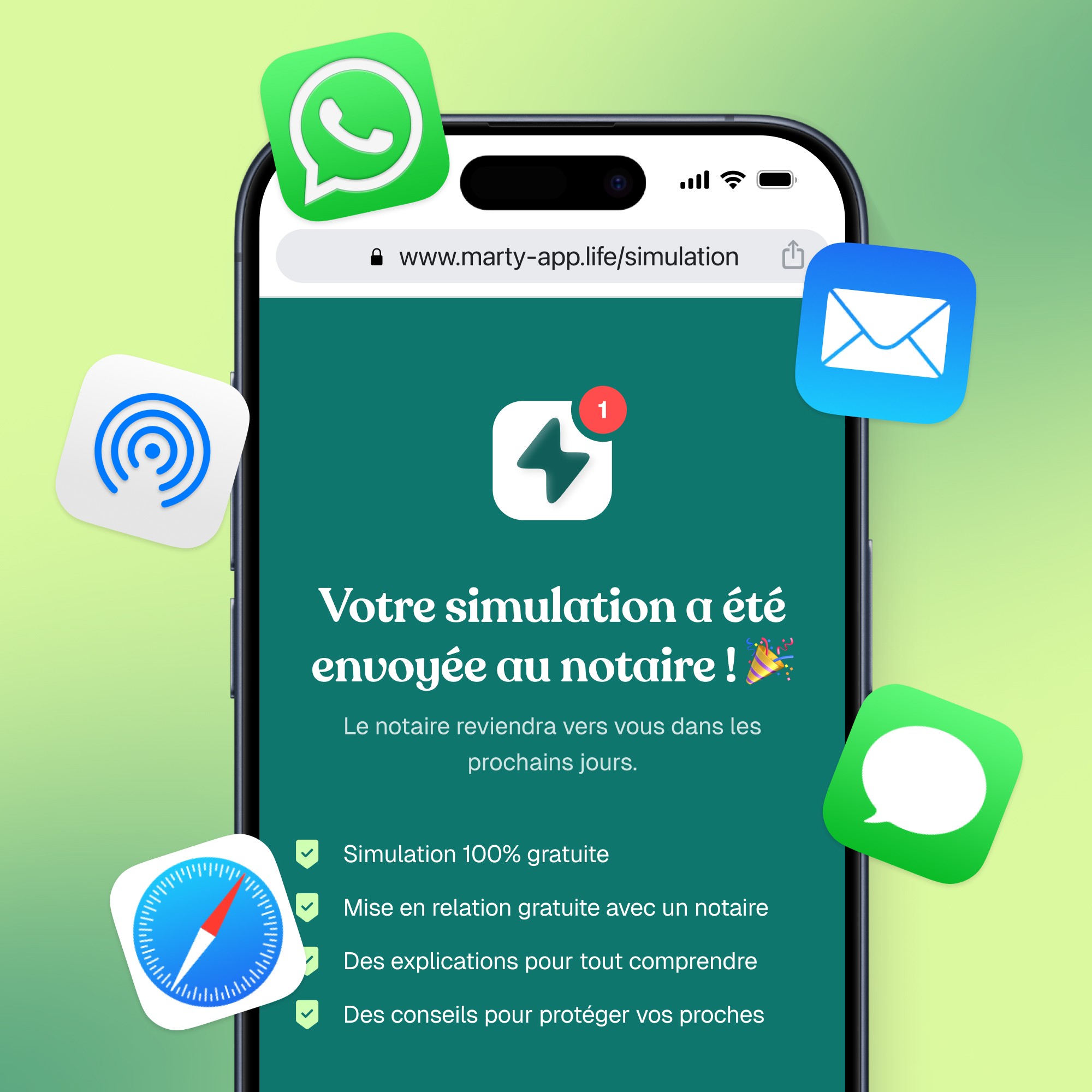 Marty réduit le temps nécessaire pour collecter les informations des particuliers grâce à un formulaire pédagogique et un premier résultat de simulation. Les notaires peuvent se concentrer davantage sur leur expertise et leurs conseils au moment du rendez-vous.